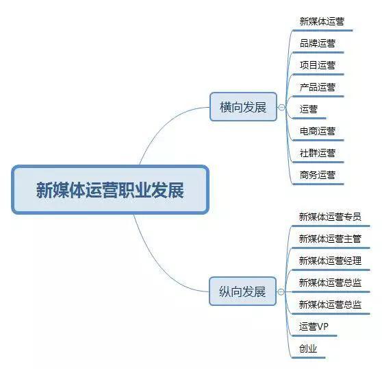 新媒体运营纵向发展就是运营主管、运营经理、脑洞运营、运营总监、运营首席官、公司运营VP。